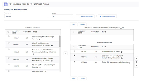 Integrating IBISWorld data enhances Salesforce’s analytics by adding deep industry insights and market trends. This integration empowers sales, strategy, and credit teams to identify opportunities, assess risks, and forecast performance with greater confidence.
